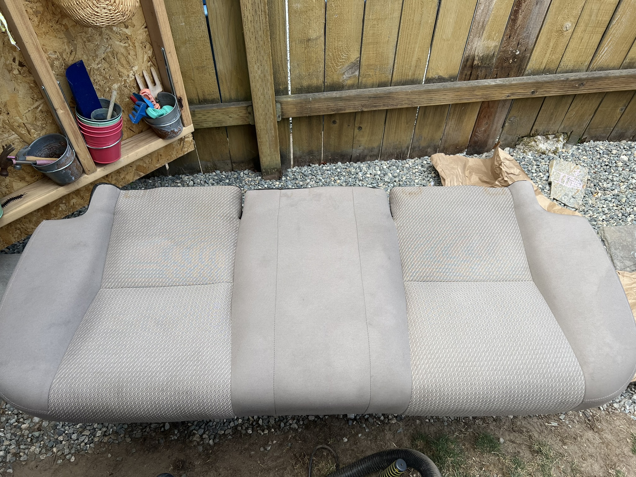 All carpet and seats were degreased, vacuumed and hot steamed while vacuumed at the same time. Multiple passes, the result is as good as it gets. See the vaccum picture for yourself, that's a single pass on a rear bench.