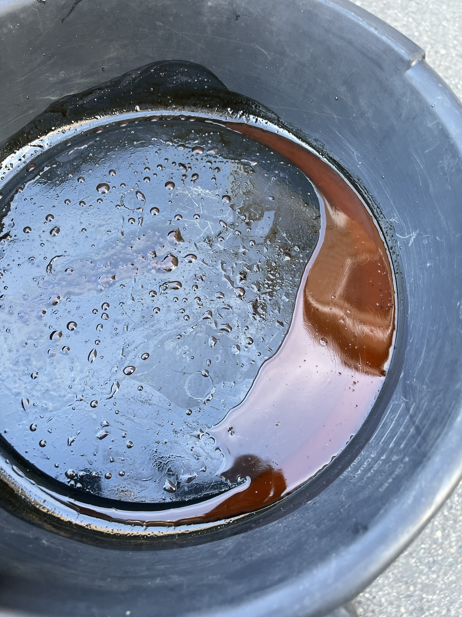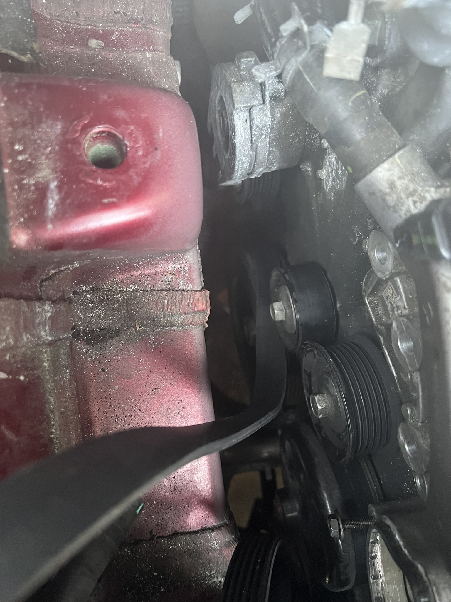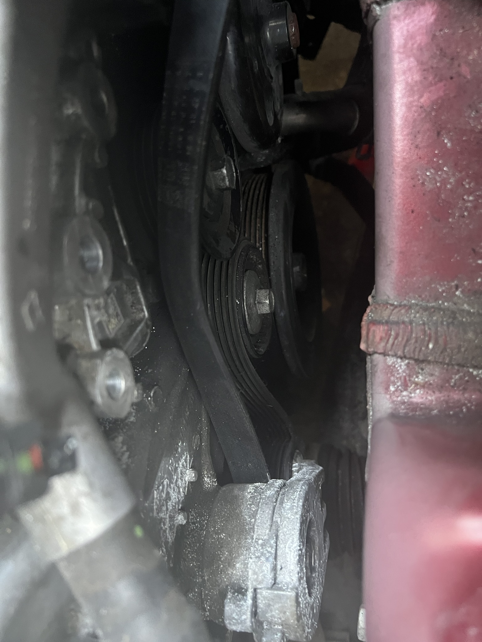 At this point I briefly considered blue / green / etc. chemical gasket fix agents, upon a deeper dive on this topic and learning about the origin of those agents, I returned all of the goblin colored bottles and went back to replacing the head gasket plan. I found a professional shop video, where the engine was out of the car and it still took 24h of shop time. Beginning to doubt I'll even finish this job, I started the struggle of removing the timing cover. What a *ich! The goo just would not let go and trying everything short of prying, I resorted to heat gun and slow pull with ratchet stripes tied to our neighbors fence posts.