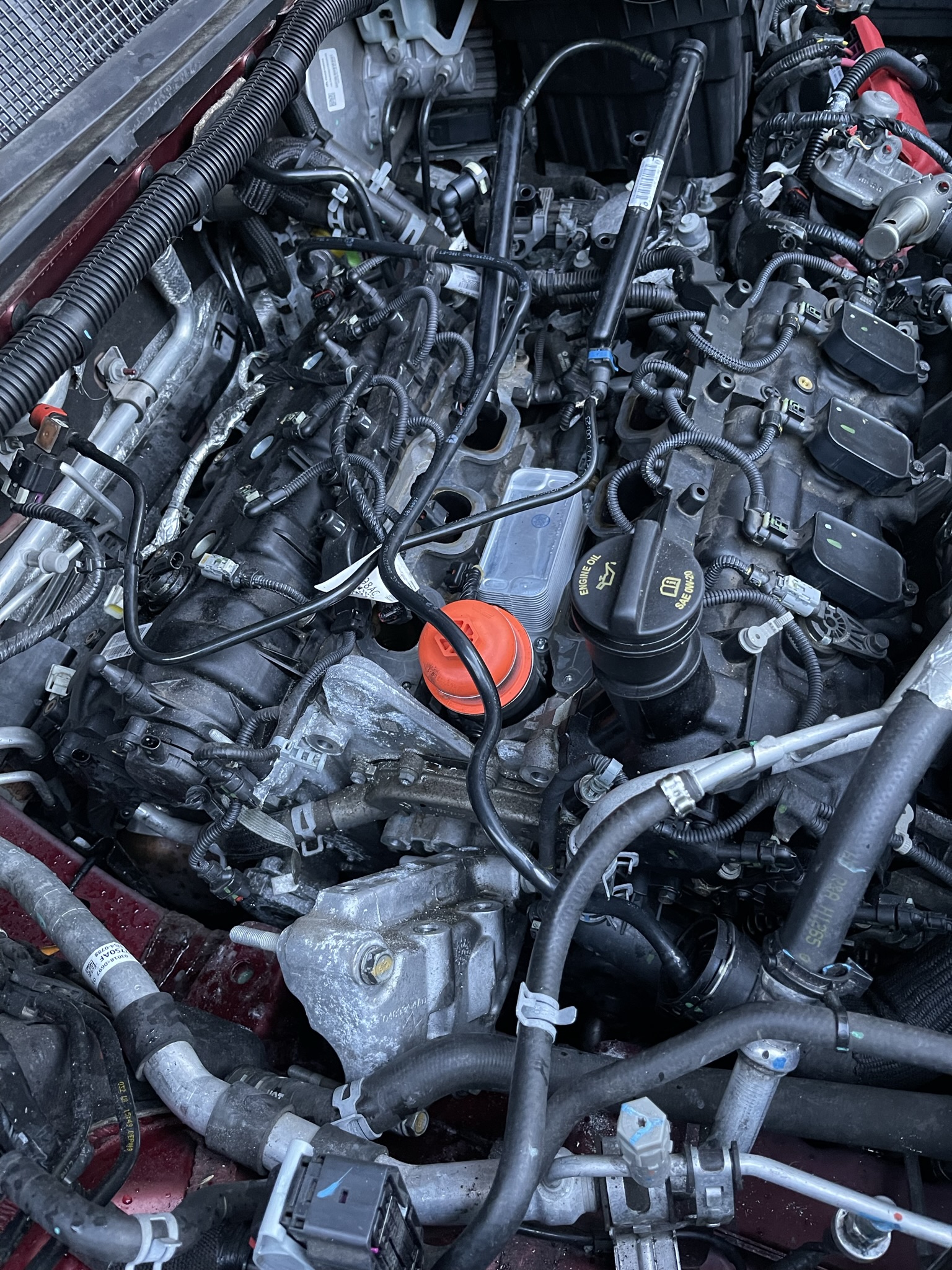After re-charging both batteries and many failed attempts to start the van I began researching common failure modes of the infamous Pentastar engine. Knowing it could be a burnt starter narrowed down my search to a ... drum roll ... head gasket failure and a subsequent hydro lock. In a video where a mechanic has turned the crank with a wrench he found water (coolant) in the oil pan and as he turned the crank water could be heard flowing inside the cylinder, which is the confirmed hydro-lock. After taking a sample from the bottom of the oil pan and pulling out the spark plugs one by one this issue indeed affected our engine. It is estimated about 0.5% Pentastars suffer from the same fate, meaning 1 in some 200 Chrysler 300s, Jeeps, Pacificas, etc. Sounds like a lot! Shops are quoting upwards of $5000 and no remaining warranty on powertrain on ours. It expired in early 2020 as a "certified pre-owned". What a joke!